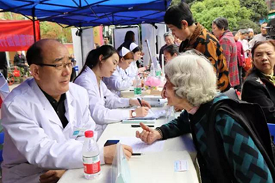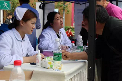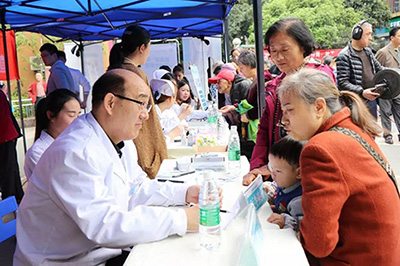 随着咨询的社区居民越来越多,义诊现场也忙碌了起来,消化内科主任医师邹天森带领着义诊人员黄欢等为广大社区居民提供咨询服务。医院义诊护士苟蓉、朱婷、洪娟也努力的做着义诊服务。中午义诊人员都没有休息,依旧在自己的岗位上给恪尽职守,认真负责的为社区居民服务。