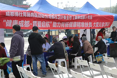 3月30日嘉华胃肠病医院在双流蛟龙港海滨城举行了“2017健康重庆 胃爱启航”公益义诊活动。现场天气阳光明媚、春风拂面,不到9点钟 ,已经有不少市民聚集到了我们的义诊现场进行咨询。大家都有序的排队,做登记,量血压、监测血糖,人气堪比演唱会现场。
